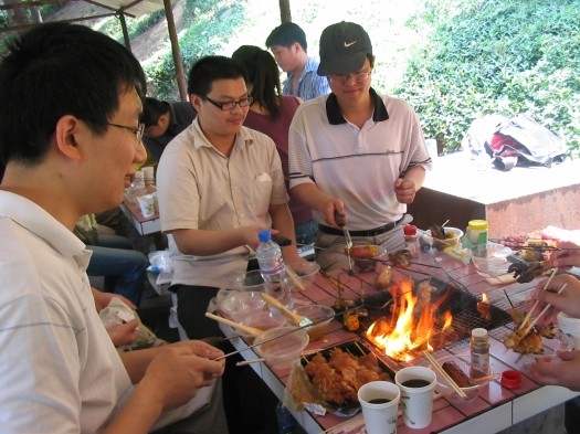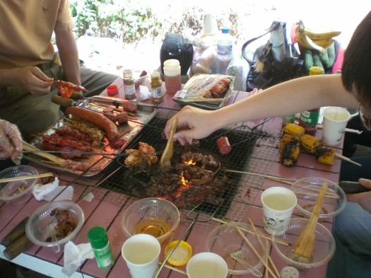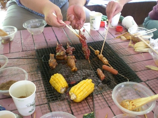 來個(gè)合照吧 | 來,想吃的,自己動(dòng)手 | 烤玉米好香啊 |
